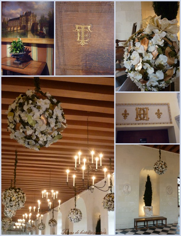 Je vous offre un aperçu des décorations de ce Noël 2012 à Chenonceau, ainsi qu’un symbole de ce château royal à broder sur le support de votre choix.