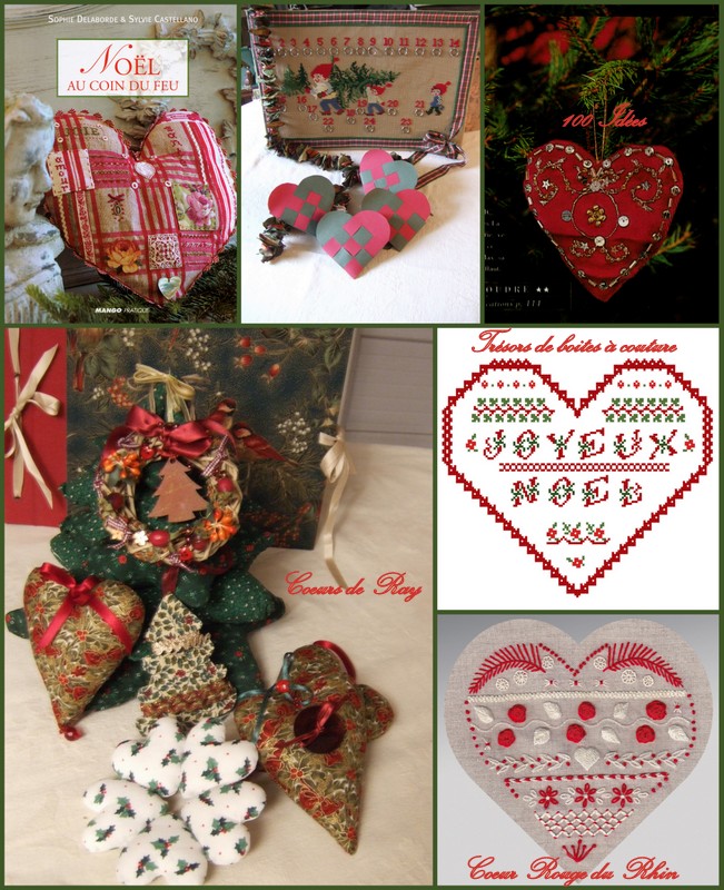 Des coeurs de Noël brodés au point de croix, en broderie traditionnelle, en tissu, en patchwork, en papier.. ils sont toujours décoratifs et restent un très beau symbole.